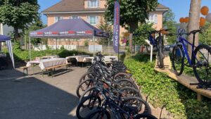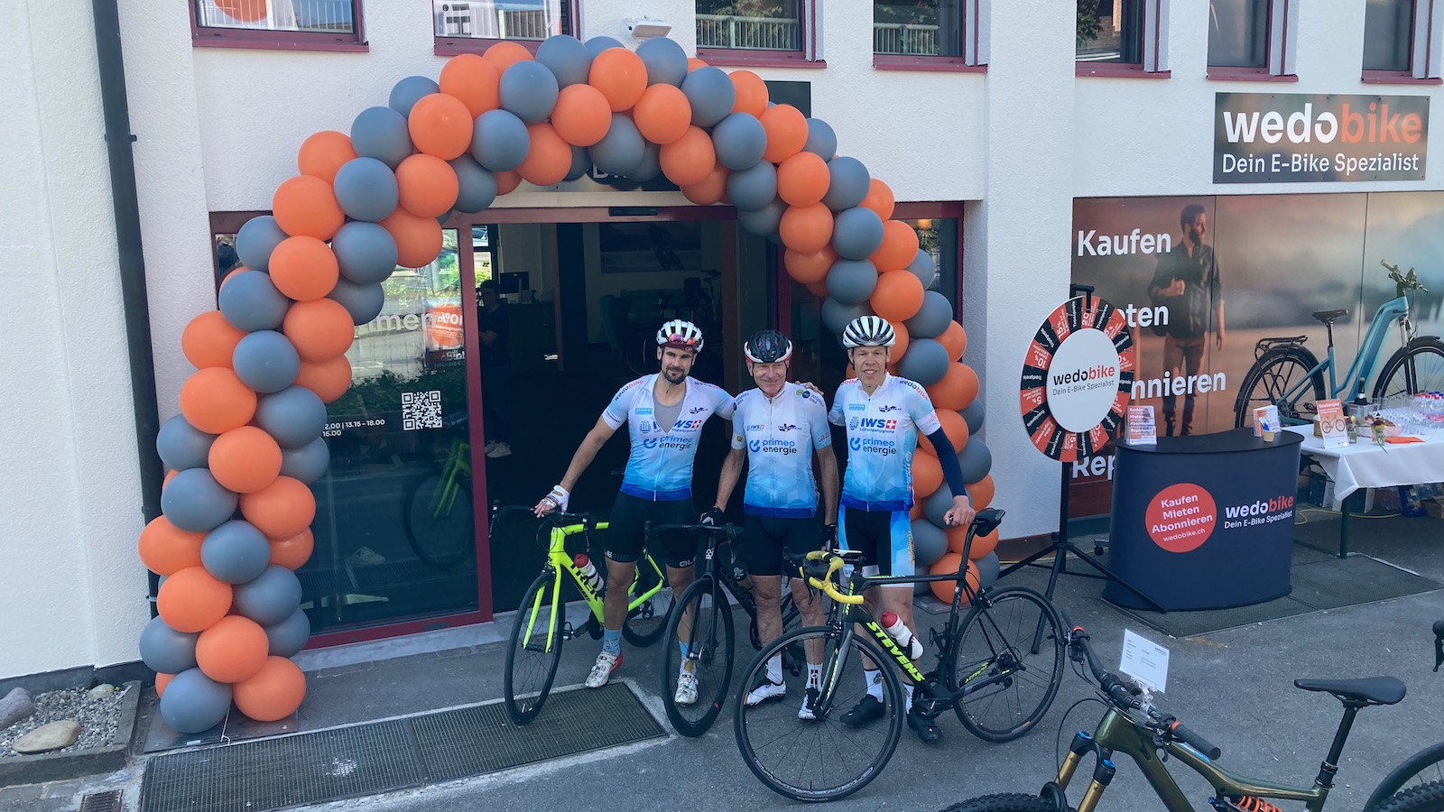 Bei schönstem Sommerwetter trafen sich am Samstag, 3. Juni, zwei Tret-Lager Teilnehmer und ein Gruppenleiter bei der neuen wedobike Filiale in Arlesheim.