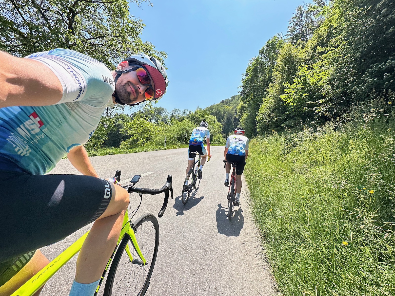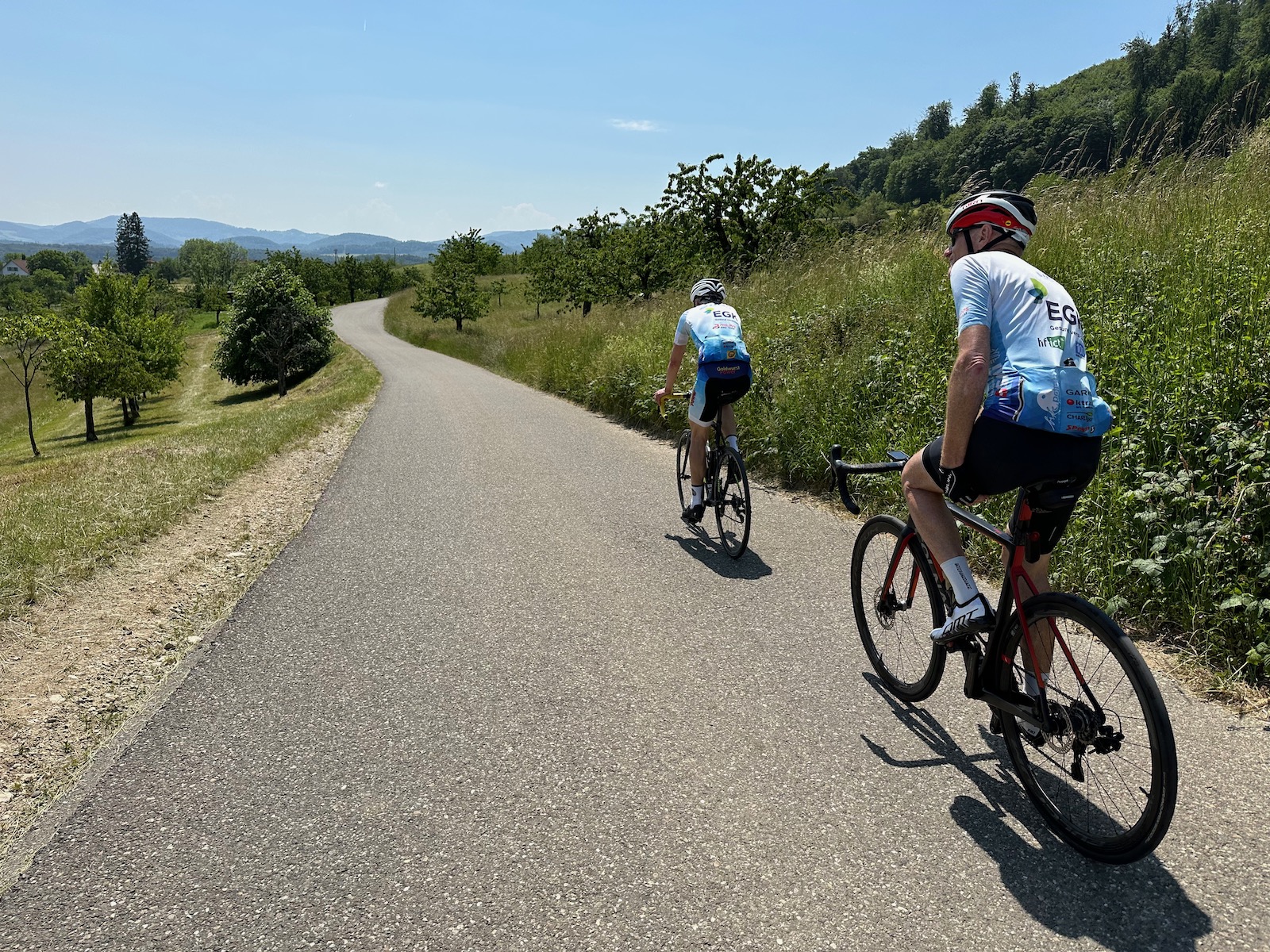 Nach Besichtigung der neuen Räumlichkeiten (wir entdeckten auch Rennvelos und Gravel-Bikes von Orbea ohne Motor 😉) ging es zuerst auf die «spontane surprise» Trainingsausfahrt. Die abwechslungsreiche Runde führte uns via Grellingen, Roderis, Fehren, Büsserach, Meltigerberg, Nunningen, Ziefen, Lupsingen, Seltisberg, Nuglar, Büren, Sewen und Gempen zurück nach Arlesheim. In der kleinen harmonischen Gruppe vergingen die 76 km und 1492 hm wie im Flug und nach der Rückkehr wurden wir am wedobike Eröffnungsfest mit Kaffee, Streuselkuchen und hausgemachtem Eistee von mundRad verwöhnt. Vielen Dank an Werner und Lars fürs Mitfahren und besten Dank an Philip Kessler für den herzlichen Empfang bei wedobike.