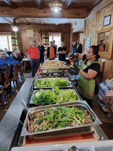 Ein weiteres Highlight der Woche war das Essen am Abend des Ruhetages in Davos-Glaris. Die Köchin Phon vom «Restaurant Bar 100» aus Basel (seit vielen Jahren als Silber-Sponsor beim Tret-Lager engagiert) hat für den ganzen Tret-Lager Tross – tatkräftig unterstützt vom «Tret-Lager Küchenteam» – gekocht. Das thailändische Menü war hervorragend und hat alle MEGA begeistert!!