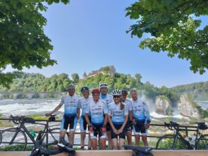 Ganz toll und gleichzeitig anspruchsvoll war die Strecke der Rundfahrt 2023. Die 6 Etappen führten die 37 Rennvelofahrer*innen, 5 Guides und 12 weitere Personen des Staffs von Basel über die Innerschweiz ins Engadin, um via Bodensee und vorbei am spektakulären Rheinfall bei Neuhausen wieder nach Basel zu gelangen. Die Route ging natürlich auch ins Hochgebirge und bekannte Alpenpässe fehlten nicht (insgesamt wurden 5 Pässe auf über 2‘000 M.ü.M. erklommen). Das sonnige und warme Wetter leistete einen wesentlichen Beitrag zum guten Gelingen der Tour.