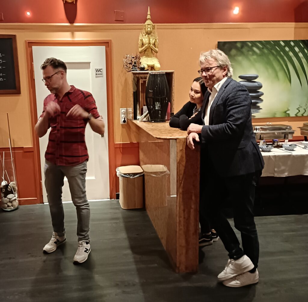 Getroffen haben wir uns im „Restaurant Bar 100“ in Basel, bei unserem langjährigen Silber-Sponsor. Nach der Präsentation von Stephan (allg. Infos), Rolf und Peter (Vorstellung der Tret-Lager Route und Unterkünfte 2024) folgte eine kurze Ansprache von Bruno Imhof, Inhaber des Restaurant 100. Danach wurden wir – einmal mehr – mit einem fantastischen Thai-Buffet richtig verwöhnt. Ob mit oder ohne scharfe Thai-Sauce, es wurde viiiiiel gegessen (fast so viel wie im Tret-Lager… 😉).