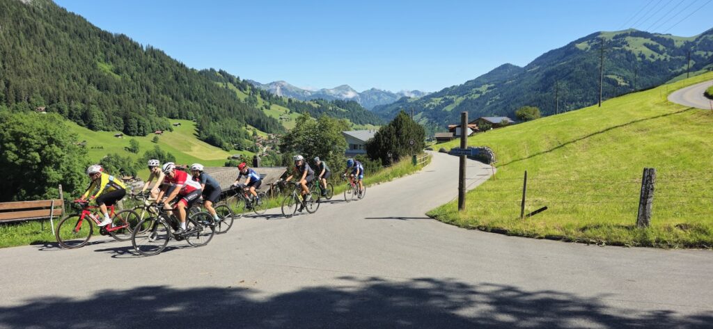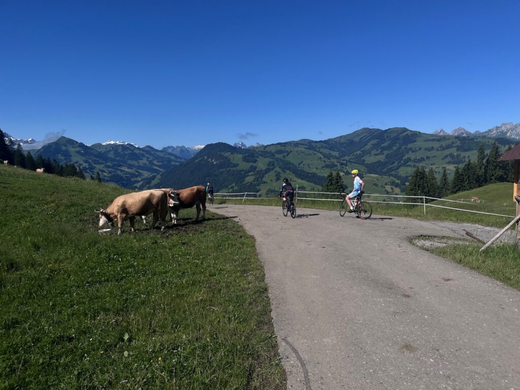 Zugegeben, die „grossen“ und bekannten Alpenpässe sind in der diesjährigen Route nicht zu finden. Aber es mangelt keineswegs an Höhenmetern. Und die etwas unbekannteren Pässe, die auf den ersten drei Etappen auf dem Programm standen, bieten umso überwältigendere Landschaften und Ausblicke. Beispielsweise der Gestelenpass, der nach dem Start der zweiten Etappe von Zwischenflüh ins Simmental führte. Oder der Mittelberg, den die schnelleren Gruppen von Jaun nach Saanen überquerten. Und die Pässe Col de la Croix und Pas de Morgins auf der Königsetappe am Dienstag boten wundervolle Aussichten auf die umliegenden Täler.