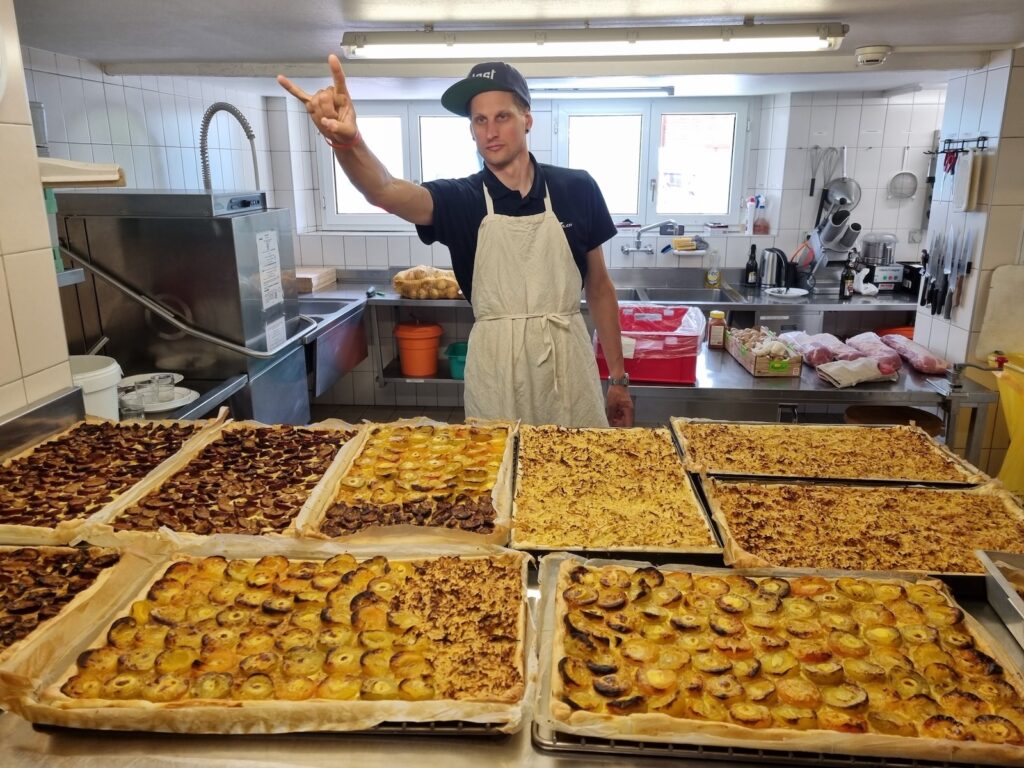 Wobei das Wort „Frühstück“ etwas untertrieben ist. Es handelt sich viel eher um einen Brunch, den Ruedi, Käthi und Flavian aus dem Küchenteam vorbereitet hatten. Von Rührei mit Speck über Porridge bis hin zu Käse, Aufschnitt und frisch gebackenem Zopf gab’s alles. Ein herrlicher Start in den Tag!