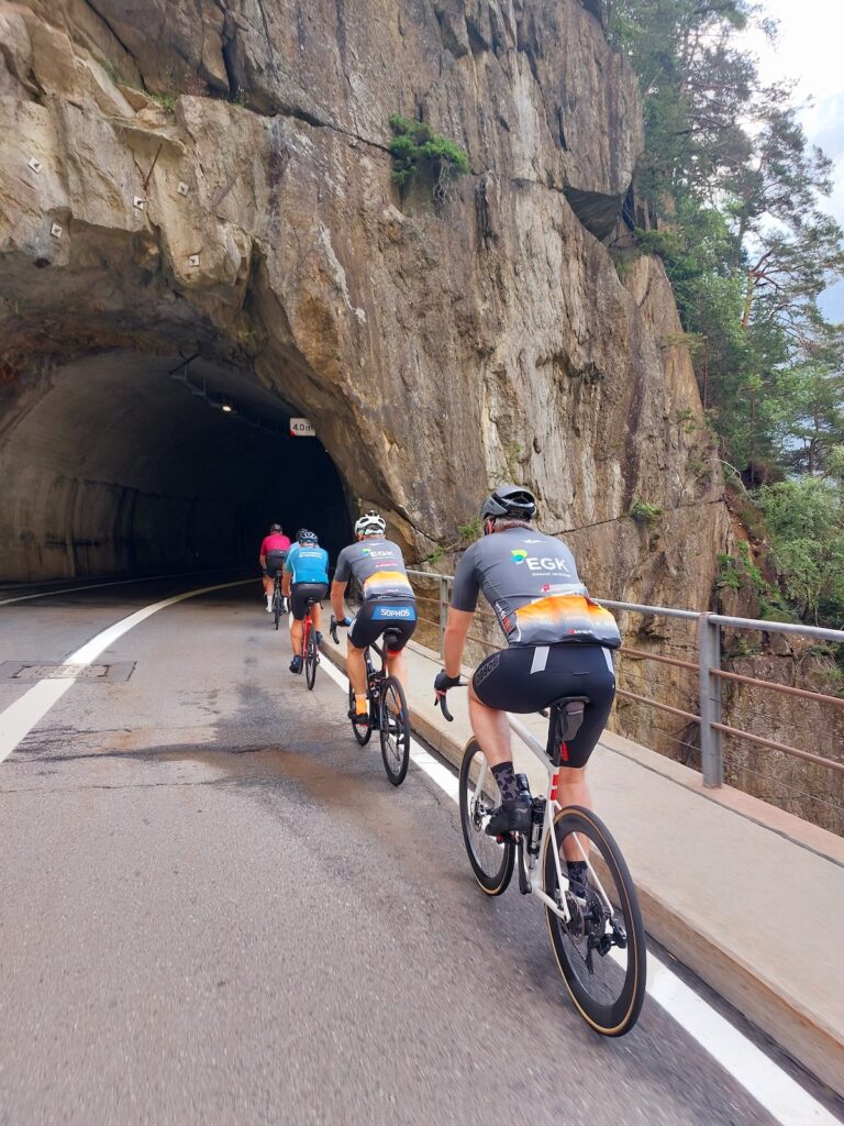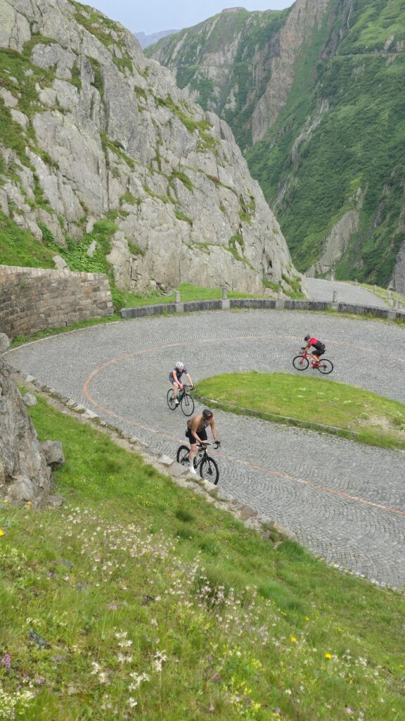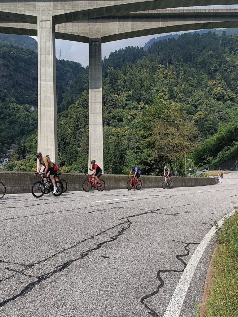 Die diesjährige Strecke umfasste auch einige der „grossen“ und bekannten Alpenpässe und ging an diversen berühmten Sehenswürdigkeiten unseres schönen Landes vorbei. Am 1. Tag führte die Route durch die bezaubernde Bodenseeregion mit ihren sanften Hügeln und Rebbergen und ging am 2. Tag weiter durch das hügeligere Toggenburg, hinein in die flache Rheinebene bis nach Chur. Dort begann der teilweise steile Anstieg hinauf zur Lenzerheide, unserem Etappenziel der 2. Etappe. Der dritte Tag war voller Highlights: Die Strecke führte vorbei an der beeindruckenden Solisbrücke, danach folgten die wunderschöne Via Mala und die Rofflaschlucht sowie die Alpenüberquerung über den San Bernardino. Das Etappenziel war Arcegno, oberhalb von Ascona, das mit spektakulären Ausblicken auf den Lago Maggiore erreicht wurde.