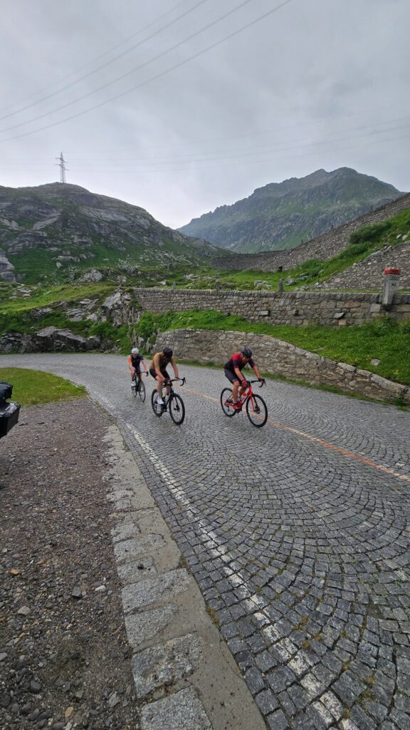 Insgesamt war das Wetter während der gesamten Woche überwiegend auf unserer Seite, was bei Alpenüberquerungen nur von Vorteil ist. Tatsächlich kann man sogar sagen, dass die Temperaturen an mehreren Tagen sogar „zu hoch“ zum Velofahren waren. Dank der gesponserten Avène-Sonnencreme blieben die Radsportler dennoch von Sonnenbrand verschont. Und die Gruppenleiter hielten während der Fahrt in regelmässigen Abständen an Brunnen, um die Bidons wieder zu füllen und sich vor allem zu erfrischen. Diese Pausen halfen, die sehr heissen Tage besser zu bewältigen und die Energie der Teilnehmenden aufrechtzuerhalten.
