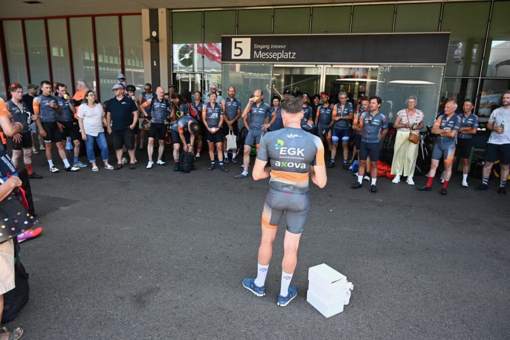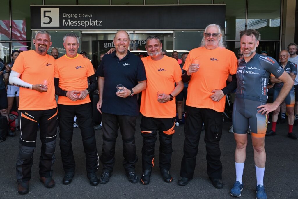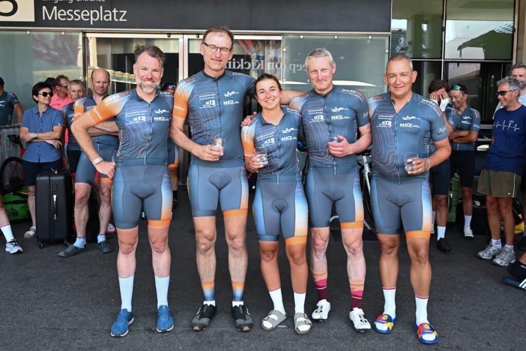 - Während der 1. und der 6. Etappe trugen alle Radfahrer:innen unser Trikot mit den zahlreichen darauf abgebildeten Sponsoren. Das war sehr eindrucksvoll, und alle Teilnehmenden wurden durch unseren Fotografen Uwe Zinke bestens in Szene gesetzt. Die entstandenen Bilder sind grossartig.