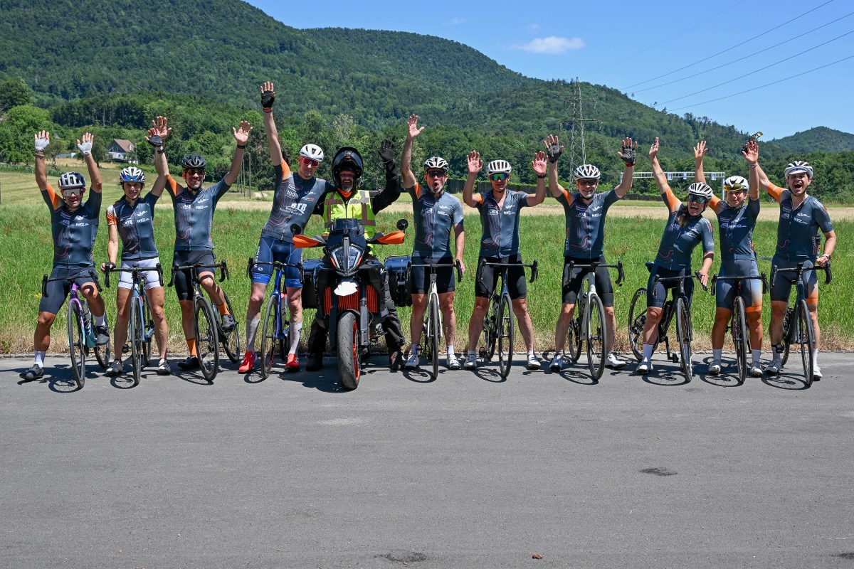 - Während der 1. und der 6. Etappe trugen alle Radfahrer:innen unser Trikot mit den zahlreichen darauf abgebildeten Sponsoren. Das war sehr eindrucksvoll, und alle Teilnehmenden wurden durch unseren Fotografen Uwe Zinke bestens in Szene gesetzt. Die entstandenen Bilder sind grossartig.