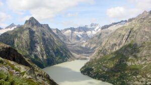 Variante B: Von der Grimselpasshöhe besteht die Möglichkeit, auf einer Stichstrasse zum Oberaarsee, dem höchstgelegenen Stausee im Quellgebiet der Aare, zu fahren.