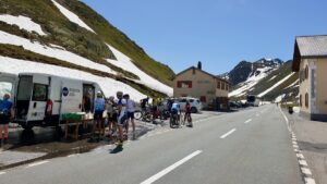 Bei der Etappe nach dem Ruhetag ist der Startort auch der Zielort! Wie bereits 2019, fahren wir einen „kleinen“ Alpencircuit über die Pässe Albula und Flüela – allerdings in umgekehrter Fahrtrichtung als 2019. Wir rollen zuerst hinunter zum Landwassertunnel. Damit wir nach dem Tunnel wieder warm bekommen, folgt unmittelbar danach eine kurze Gegensteigung hoch nach Wiesen. Weiter geht es bergab bis Alvaneu Bad und weiter nach Filisur. Hier beginnt der ca. 22 km lange Anstieg via Bergün zum auf 2315 m.ü.M. gelegene Albulapass. Nach einer rasanten Abfahrt nach La Punt rollen wir das Unterengadin hinunter bis nach Susch. Jetzt wartet noch der ca. 13 km lange Aufstieg zum Flüelapass auf uns. Von der Passhöhe auf 2383 m.ü.M. geht es praktisch nur noch bergab bis zu unserer Unterkunft in Davos Glaris.