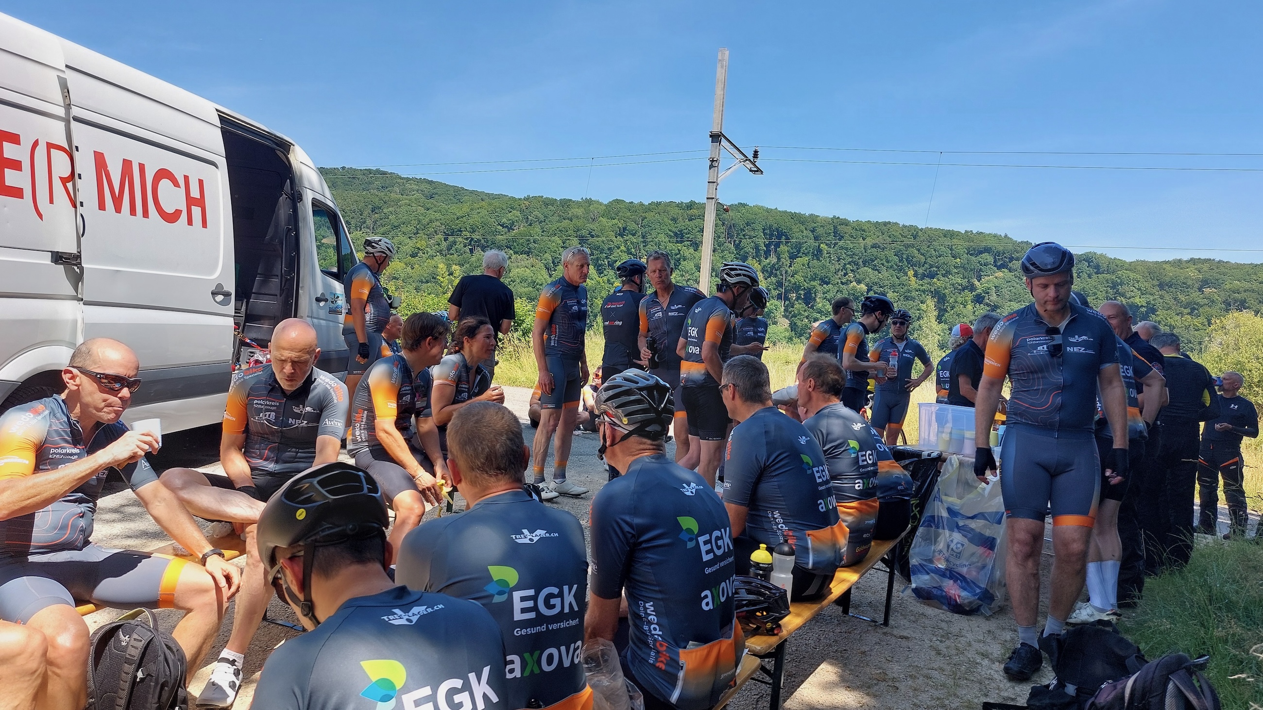 - Erfolgreiche Teilnahme: Alle Teilnehmenden – 37 Radfahrer:innen und 5 Guides – haben die 6 Etappen mit Bravour gemeistert. Unser Besenwagen wurde kaum in Anspruch genommen.